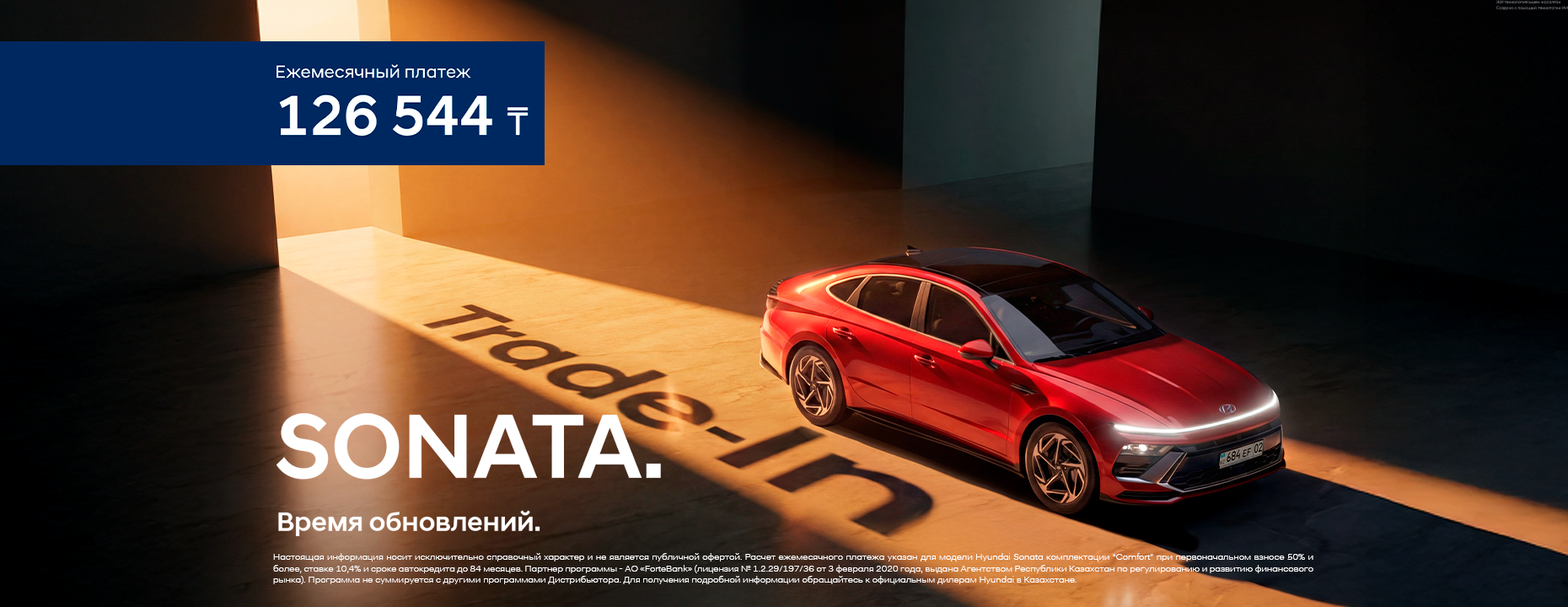 SONATA  Comfort от 10,4% от 50% до 84 месяцев от 126 544 ₸
